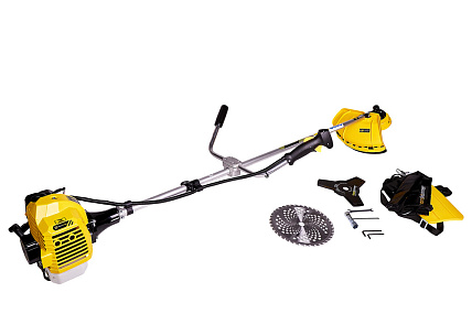 Расширенный набор режущей оснастки в базовой комплектации – позволяет эффективно использовать бензокосу для любых условий кошения: от простого подравнивания до обработки сложных участков.
