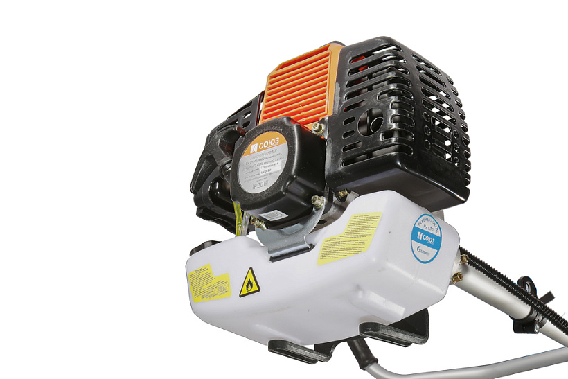 Механизм облегченного запуска – позволяет существенно снизить усилие на шнуре стартера при запуске бензокосы, благодаря применению дополнительной пружины в механизме стартера. Праймер (насос предварительной подкачки топлива) – обеспечивает уверенный запуск инструмента при низких температурных условиях и после длительных перерывов в эксплуатации. Вал повышенной прочности – обеспечивает передачу крутящего момента от двигателя к режущей оснастке, позволяет использовать бензокосу с разными типами оснастки, включая металлические ножи. Ременной подвес с возможностью регулировки – позволяет пользователю точно по себе отрегулировать положение бензокосы, исходя из своих физических параметров.