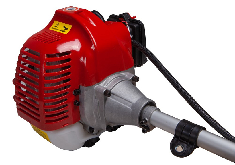Sturm BT8942D – универсальная бензиновая коса для обработки дачных участков, приусадебных и садовых территорий Модель оснащена экономичным бензиновым двухтактным двигателем рабочим объемом 42,7 см³ и мощностью 1.25 кВт / 1.7 л. с., прямой неразъемной усиленной штангой с высокопрочным валом внутри и мощным редуктором, благодаря чему способна выполнять различные задачи: инструмент уверенно справляется не только со скашиванием мягкой и жесткой переросшей травы, но и эффективен при работе с зарослями кустарника, при условии установки соответствующей оснастки, а также может использоваться в тандеме с культиваторными насадками для обработки почвы. Модель проста и максимально удобна в эксплуатации – снабжена Т образной рукоятью «велосипедного типа» – она обеспечивает лучший контроль и позволяет при работе захватывать большую площадь за один заход. Легкость запуска инструмента гарантируют механизм облегченного старта с дополнительной пружиной и праймер. В расширенную штатную комплектацию Sturm BT8942D помимо режущей оснастки (полуавтоматическая катушка с нейлоновой леской, металлический трехлопастной нож, 80-ти зубая фреза) включен ранцевый ременной подвес с защитным набедренником, способствующий снижению нагрузки на позвоночник оператора, за счет ее равномерного распределения.