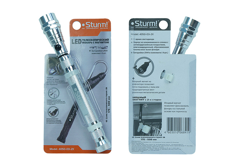 Мощность магнитов на торцевой части (увеличена на 127%, удерживает до 165г), на рефлекторе фонаря (увеличена на 67%, удерживает до 835г), что позволяет полностью вытянуть телескопический стержень при креплении на вертикальной поверхности, а также доставать мелкие металлические предметы.