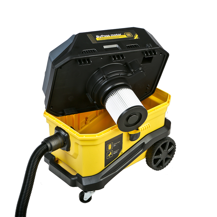 Помимо традиционного режима всасывания, конструкцией предусмотрен режим выдува воздуха – он идеально подходит для экспресс-очистки рабочих столов и верстаков, а также очистки штроб и т д. Также, пылесос может применяться и для сбора негорючих жидкостей. Благодаря мощной системе фильтрации, с применением высокоэффективного HEPA фильтра, предотвращается попадание пыли и абразивных частиц в двигатель.
