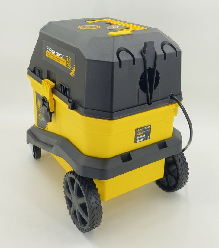 Hanskonner HVC1630 – универсальный строительный пылесос – незаменимый помощник при уборке как в мастерских, так и в бытовых помещениях, офисах, квартирах, салонах автомобилей и т д. Благодаря наличию вместительного 30 литрового бака, пылесос позволяет производить уборку на достаточно больших площадях, без необходимости его частой очистки.