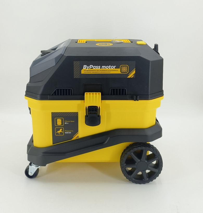 Модель оснащена байпасным 1600 Вт электромотором с внешним охдаждением, позволяющему добиться высоких показателей по скорости воздушного потока и разрежению на входе – это способствует быстрому и эффективному удалению мусора, и пыли.