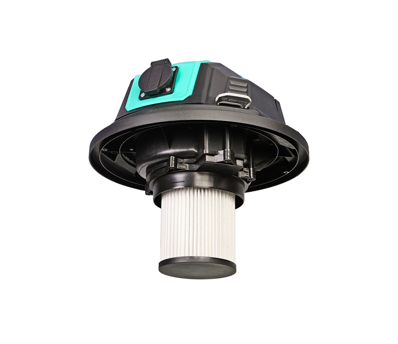 *Функция самоочистки фильтра одним нажатием на кнопку *Электророзетка с функцией синхронизации, с возможностью подключать электроинструменты мощностью до 2000Вт. Автоматическое включение пылесоса при работе электроинструмента *Набор фильтров для сухой и влажной уборки: поролоновый фильтр, матерчатый фильтр, НЕРА-фильтр *Комплект адаптеров для подключения пылесоса к электроинструменту 32-35-38 мм *Дренажный порт для легкого слива собранной жидкости