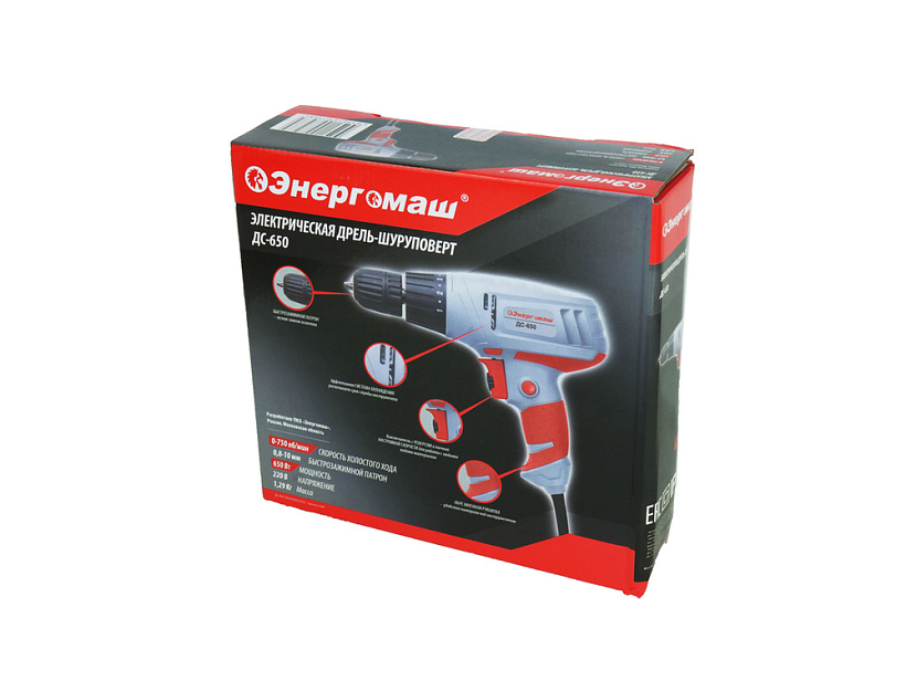 * Функция реверса упрощает выведение застрявшего в материале сверла * Регулировка частоты вращения для точной настройки под разные материалы * Плавный пуск для работы без рывков * Электронный тормоз двигателя для исключения выбега при остановке * Блокировка шпинделя и широкая муфта быстрозажимного патрона позволяют менять оснастку одной рукой * Ударопрочный корпус из нейлона для долгого срока службы Энергомаш ДС-650 * Эргономичная рукоятка с мягкой накладкой для удобной работы * Морозостойкий кабель для работы при низких температурах