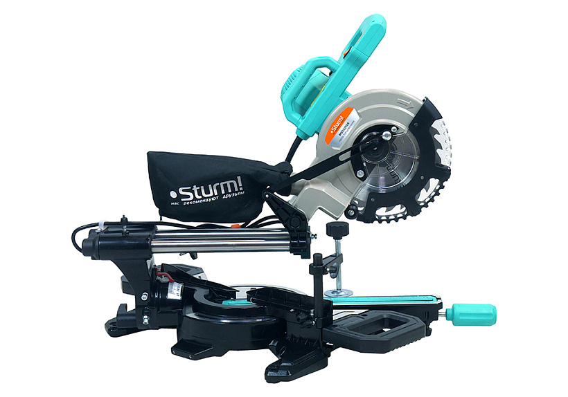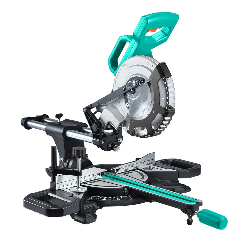 Инструмент оснащен увеличенным пильным диском, встроенным протяжным механизмом, винтовым зажимом для прочной фиксации заготовок и предотвращающие их опрокидывание выдвижными боковыми суппортами. Благодаря большому поворотному столу, фиксирующемуся в любом положении, наличию удобной регулировки с прецизионными шкалами для точной настройки нужного наклона пилу можно уверенно выставить в рабочую позицию на предварительно заданные параметры косых пропилов.